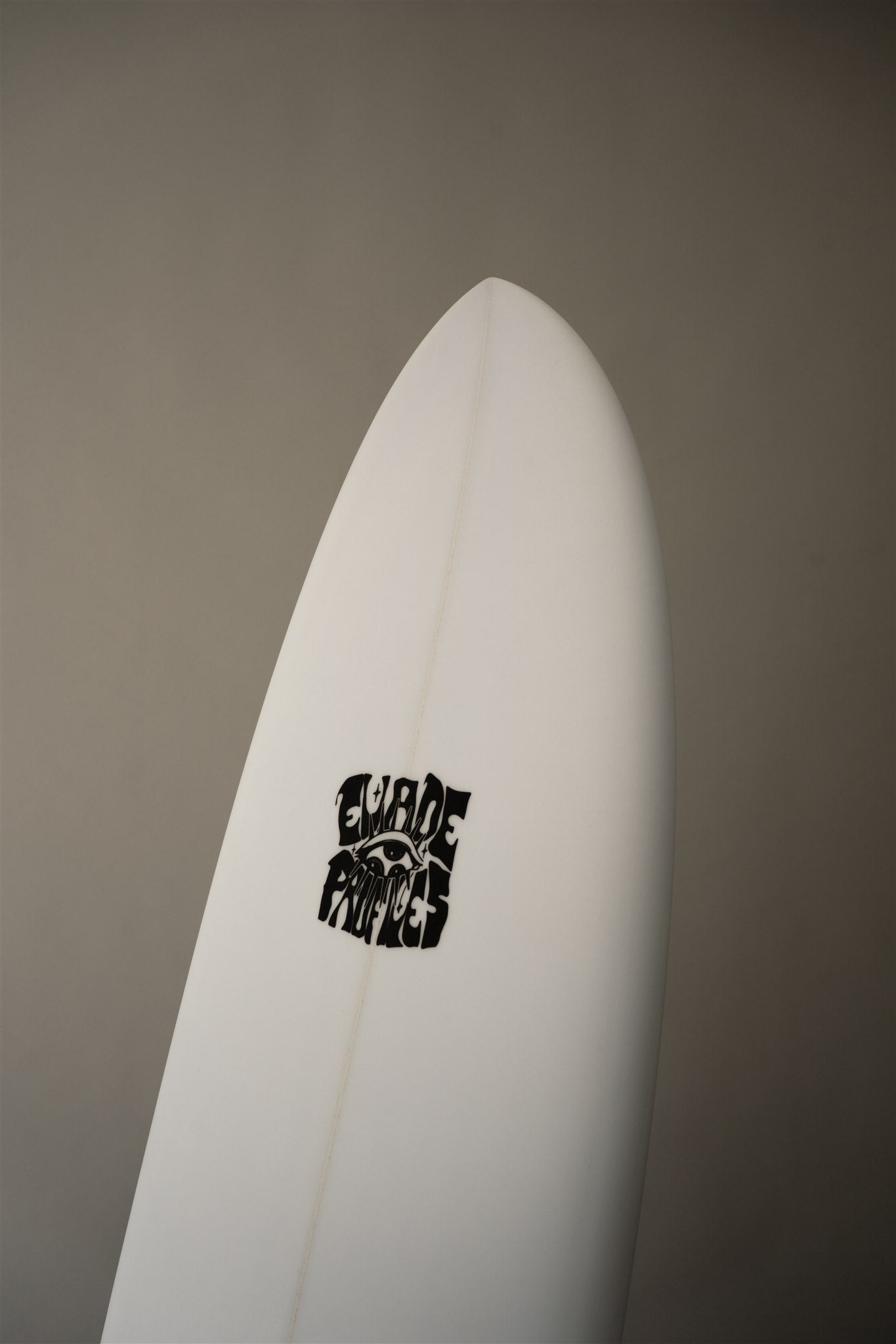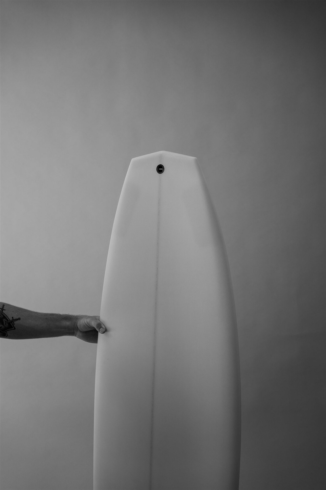 These are its shovel nose, diamond tail and most important the change from twin to thruster. The changes made give the white rabbit a dramatically different feel to its sister model, making turns sharper with better release off the top. all while keeping its speed and flow. This board works best in smaller bowlier waves due to its length, although I have ridden it in bigger swells and it does hold up.